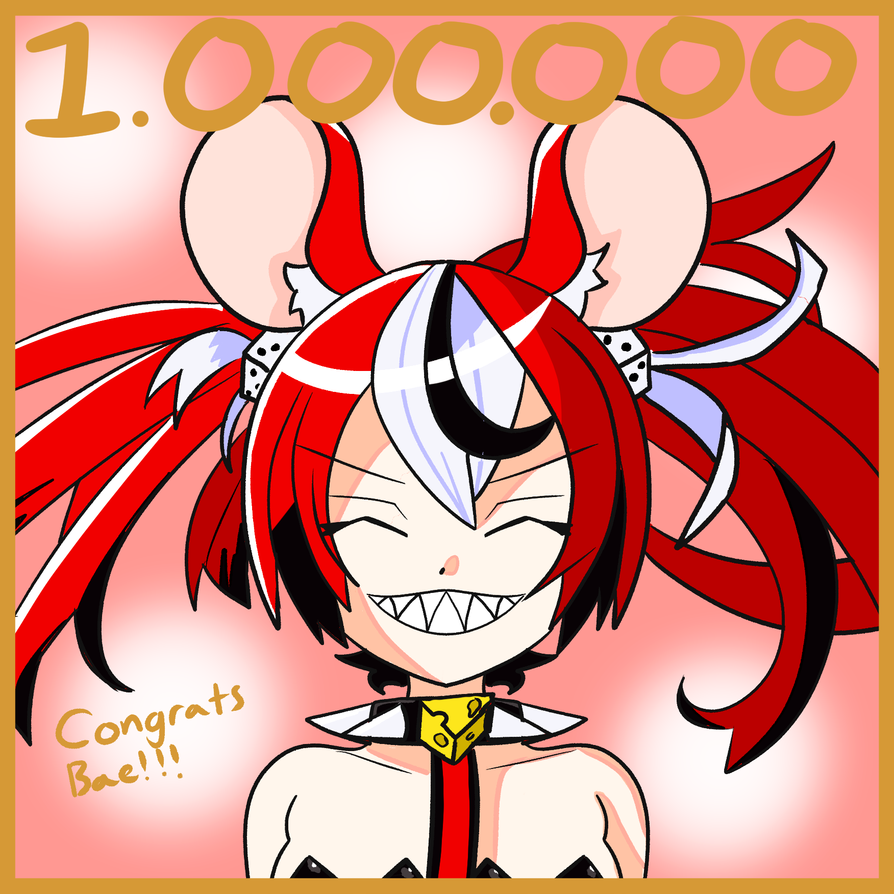 congratulations to my favorite rat, Ever since I discovered hololive as a whole and discovering your channel, it was the best thing that ever happened to me, with the streams you been doing and the concerts and music you developed, you deserve getting to 1 Million, your effort and everything you have accomplished has shown over the year and I say, you deserve every piece of it, once again Congrats bae <3